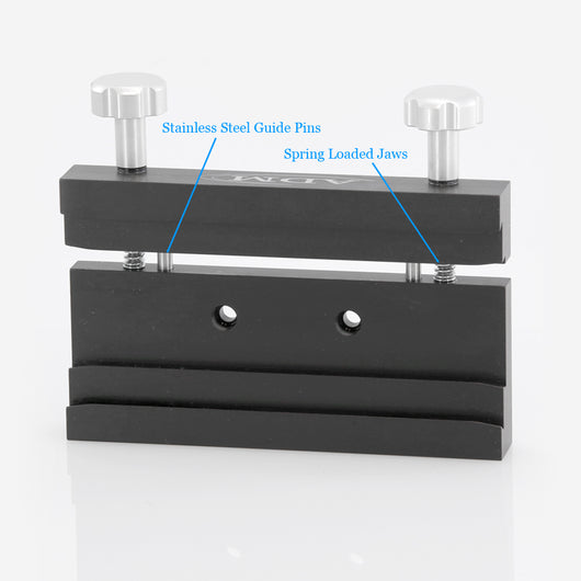 Multiple Tapped Holes: Equipped with five 1/4 x 20tpi tapped holes for enhanced versatility in mounting accessories. Hole placement includes one centered on the clamp, then at 1-inch and 2-inch intervals center to center.