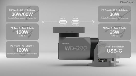 Notes: Tripod/pier, counterweights, power supply, cables, and control devices are sold separately. Two saddle USB-PD ports provide up to 150 W total power distribution for onboard gear.